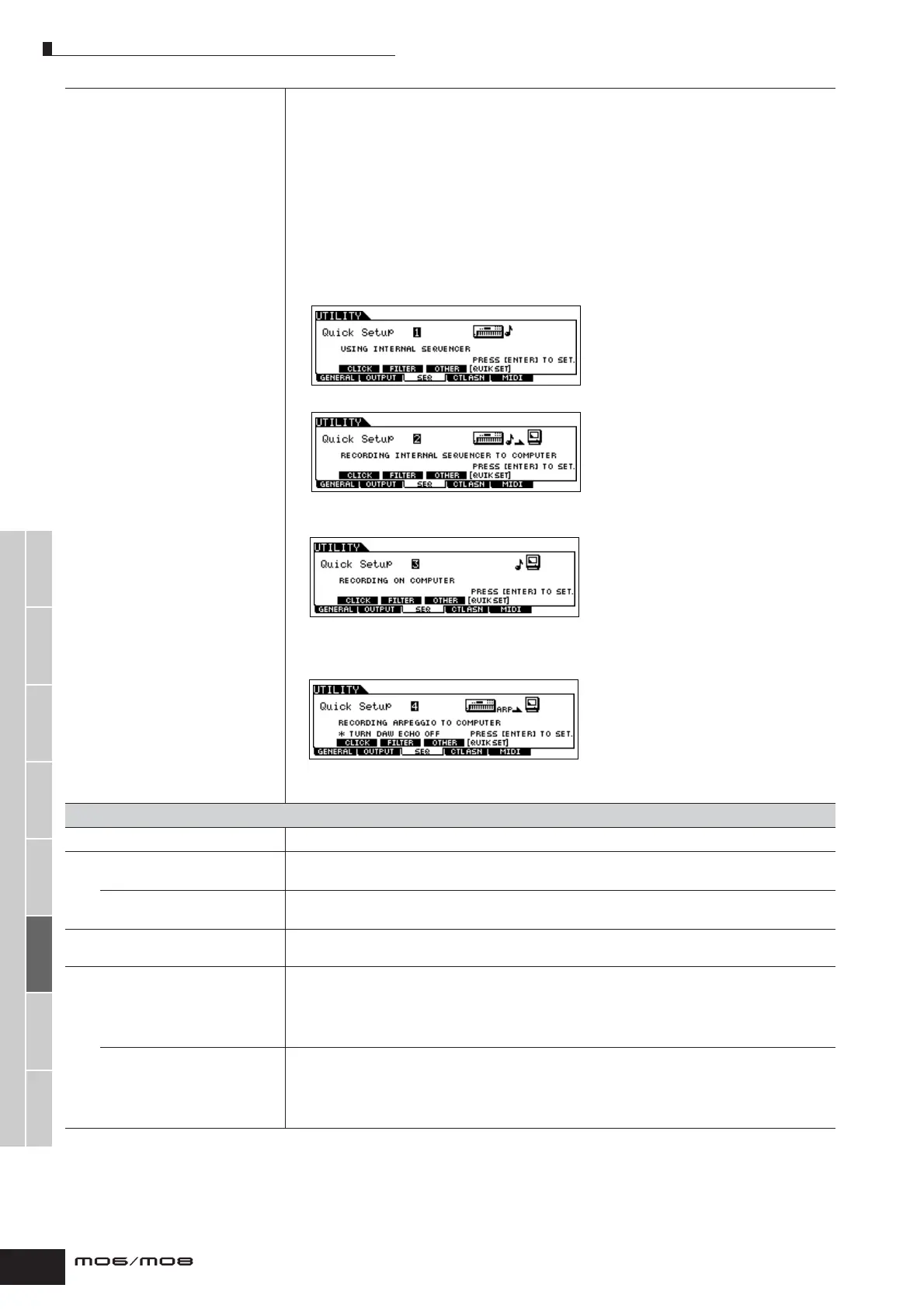 Set the MIDI Thru (MIDI Echo) setting in the sequencer to on. If you wish to synchronize the MO’s Arpeggio
