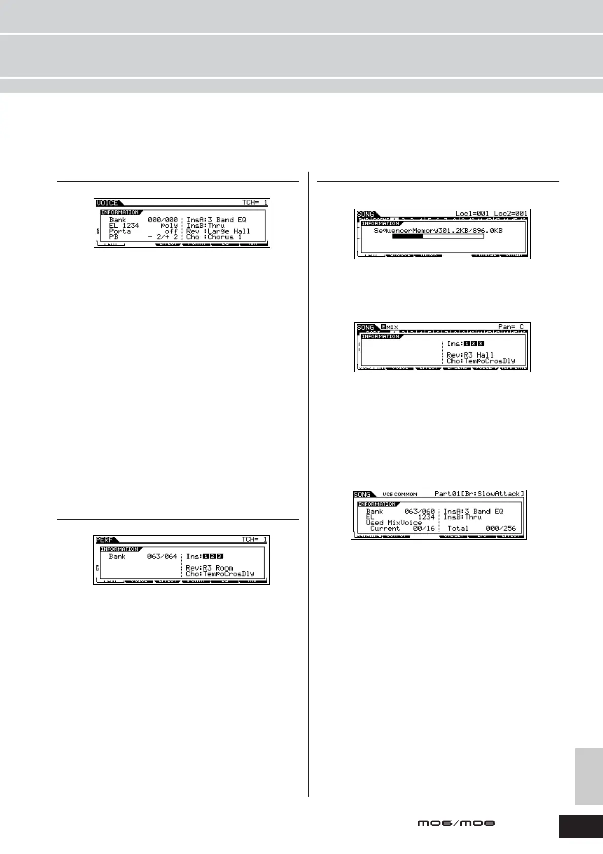 Select the desired mode, then press the [INFORMATION] button to call up the Information display for that mode. To exit from