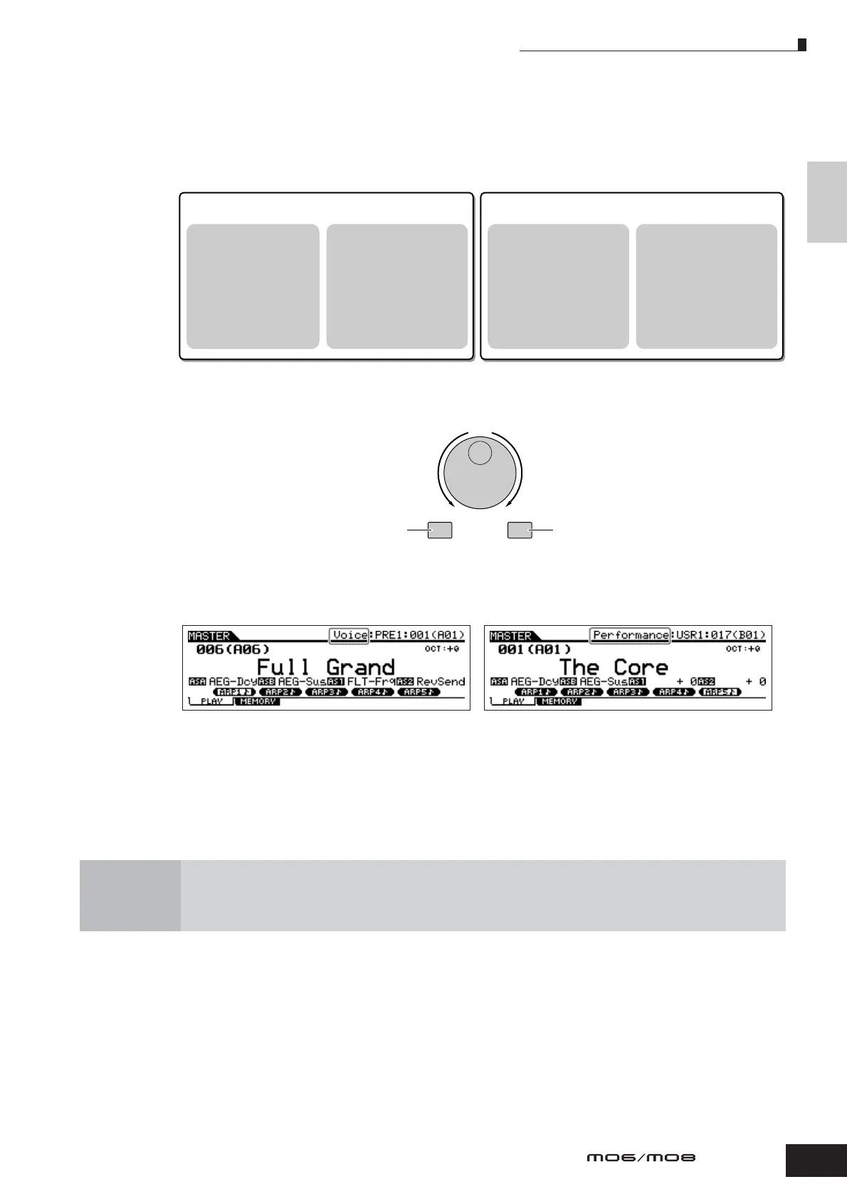 assigned to the selected Master number, “Voice” will appear at the top of the display. When a Performance
