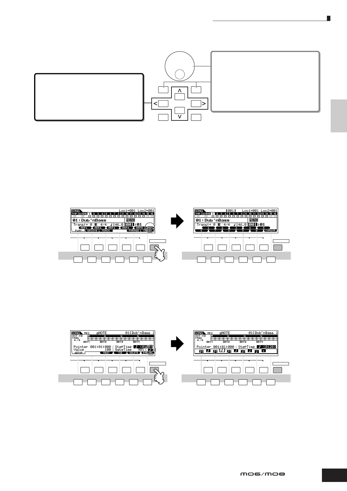 buttons below the LCD display as a numeric keypad. When the cursor is located on such a parameter, the [NUM] icon