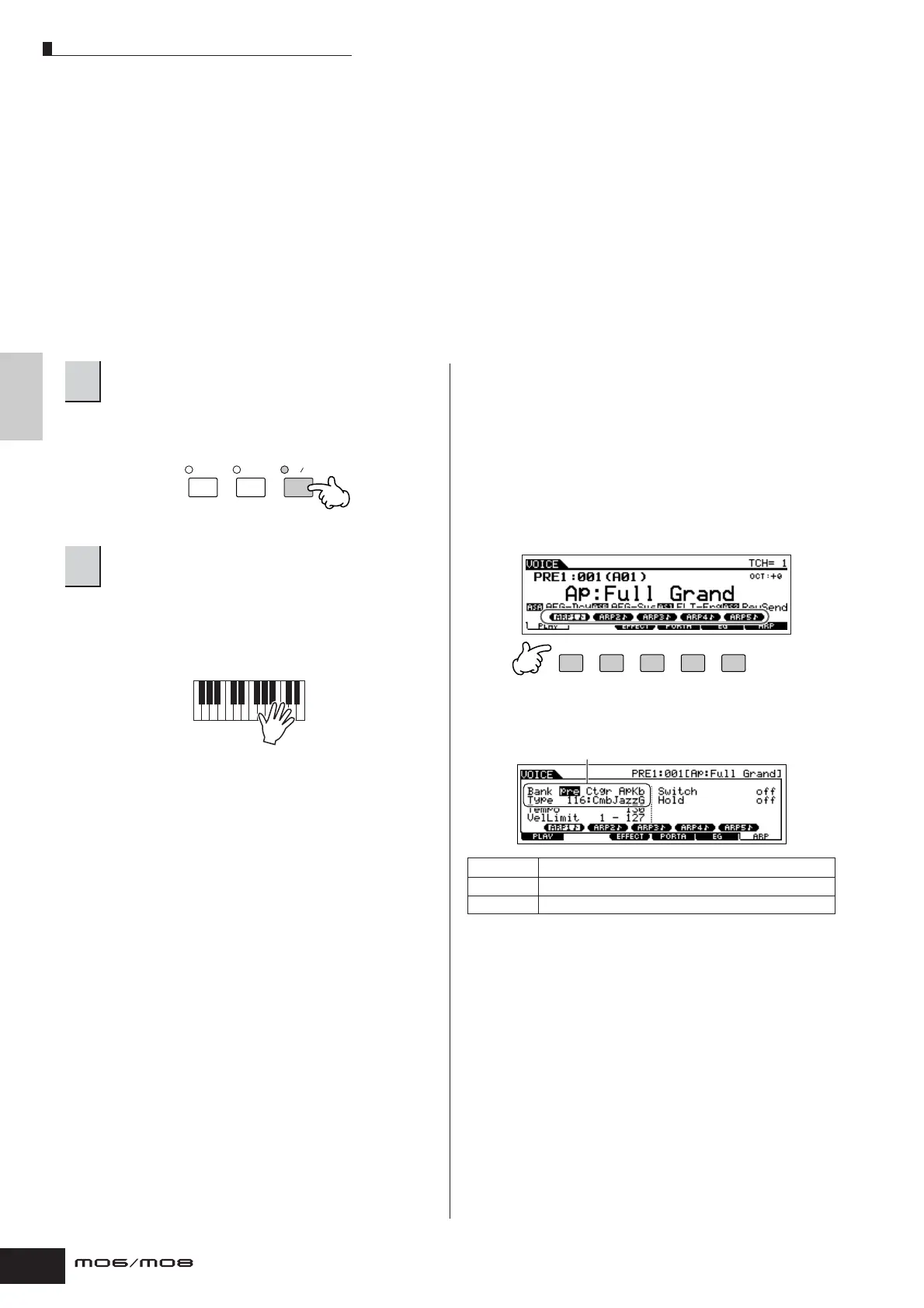 n The Arpeggio feature is also available in the Song and Pattern modes. For details, see page 79.