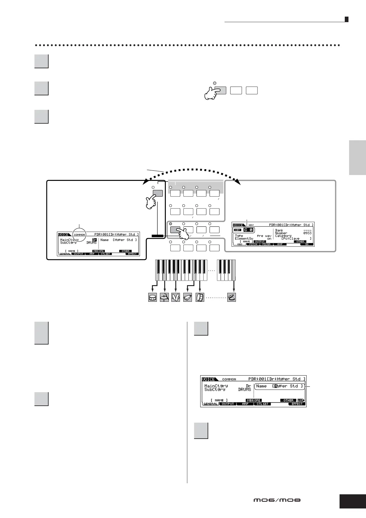 Press the [VOICE] button to enter the Voice mode, then select a Drum Voice to be edited.