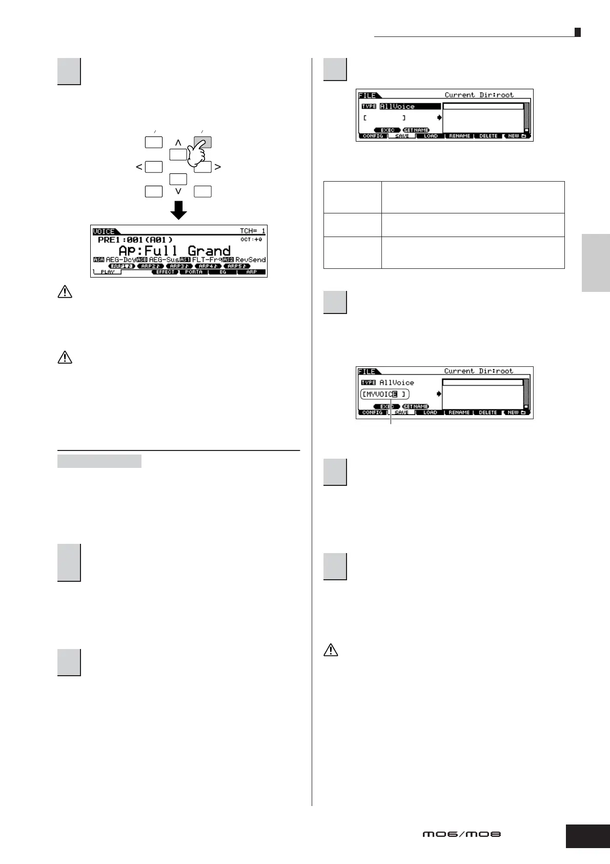 will be lost. Make sure to store the edited Voice before selecting another