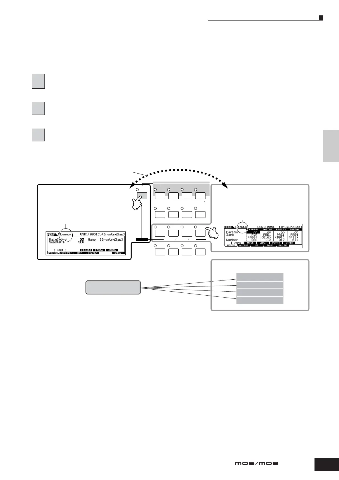 PART [1] – [4] buttons to call up the Part Edit
