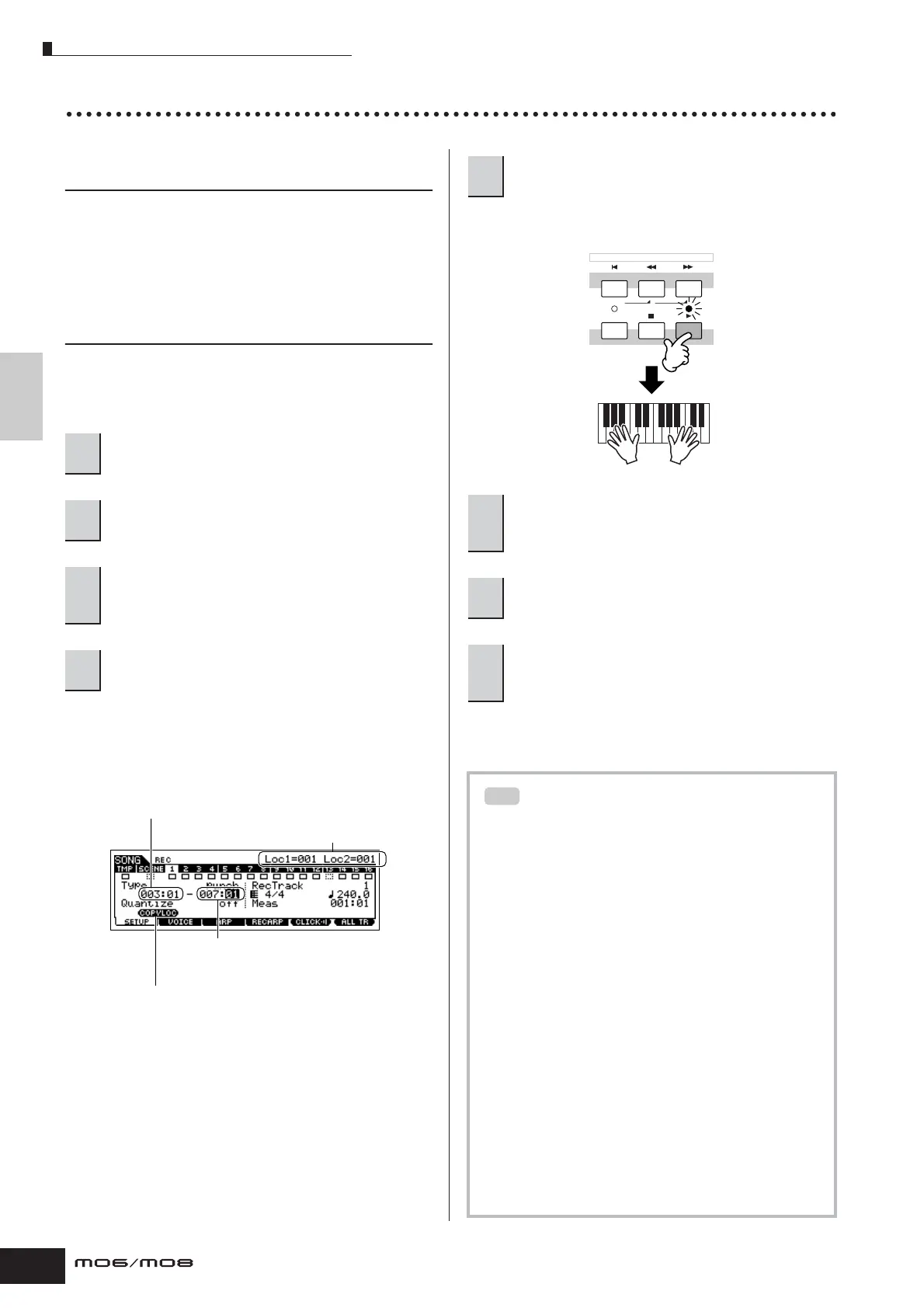 In the Song mode, use the Punch In/Out recording method