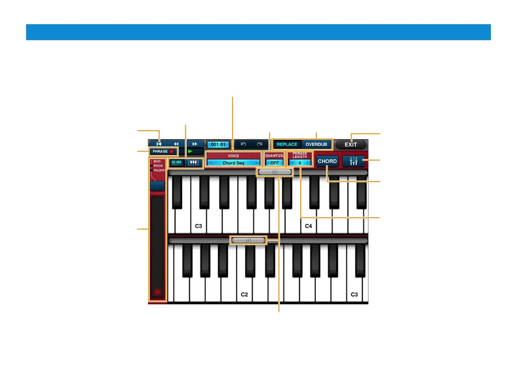 Using the Keyboard screen, you can use the on-screen keyboards to add notes directly into phrases or song blocks.