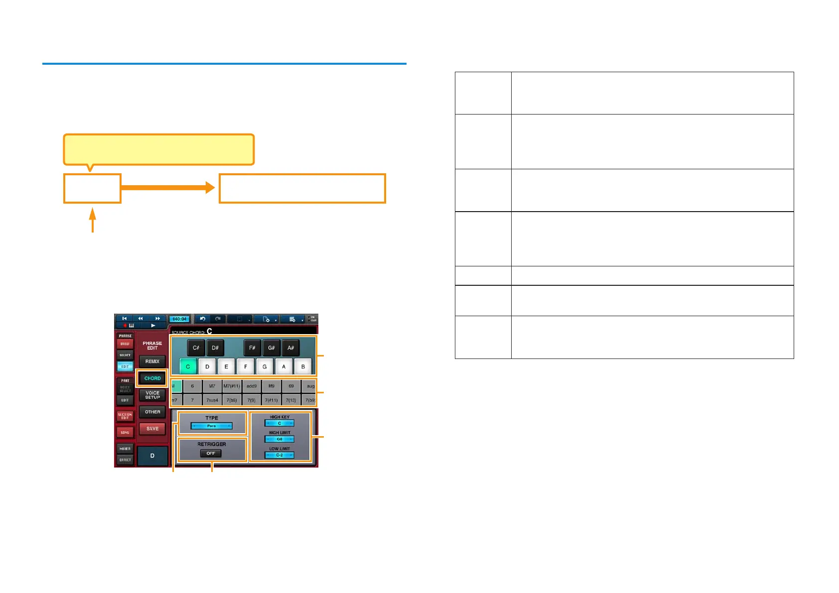 3 In Area 3, you can set one of the following chord-change types for the