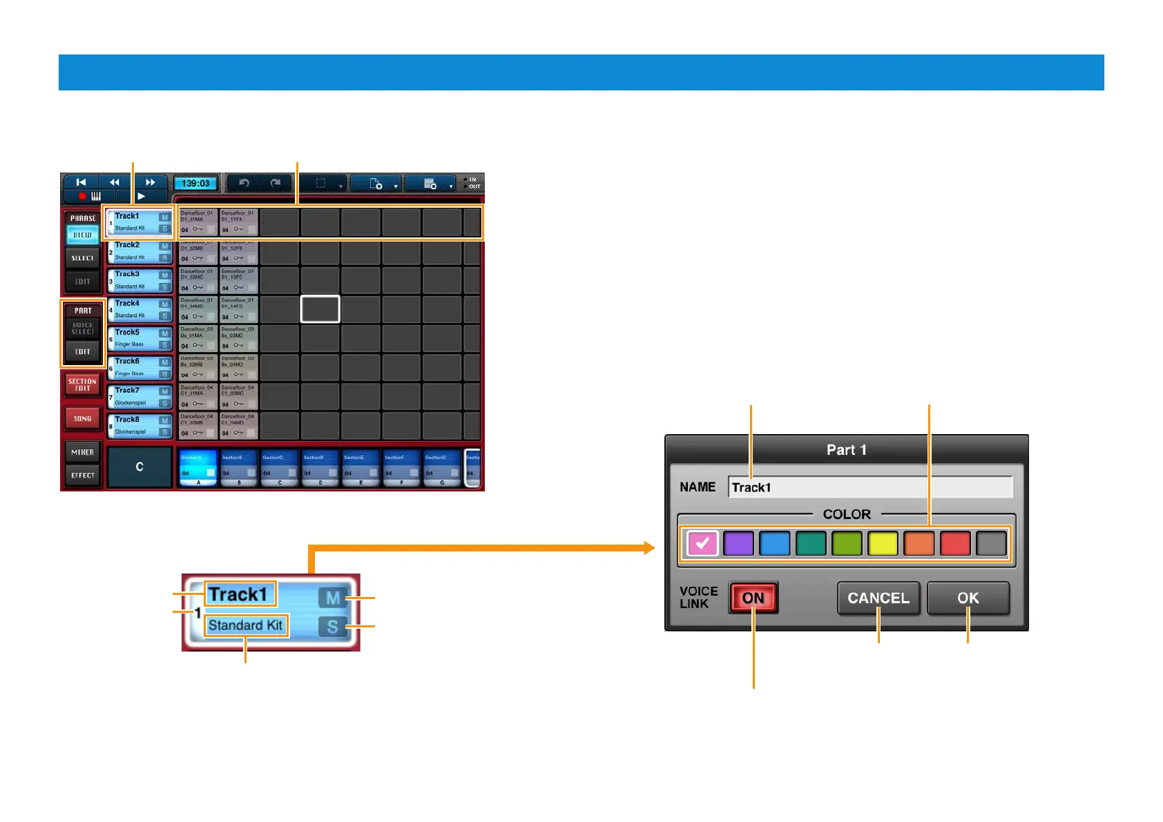 From the PART menu, you can make settings that affect all phrases and blocks in specific parts.