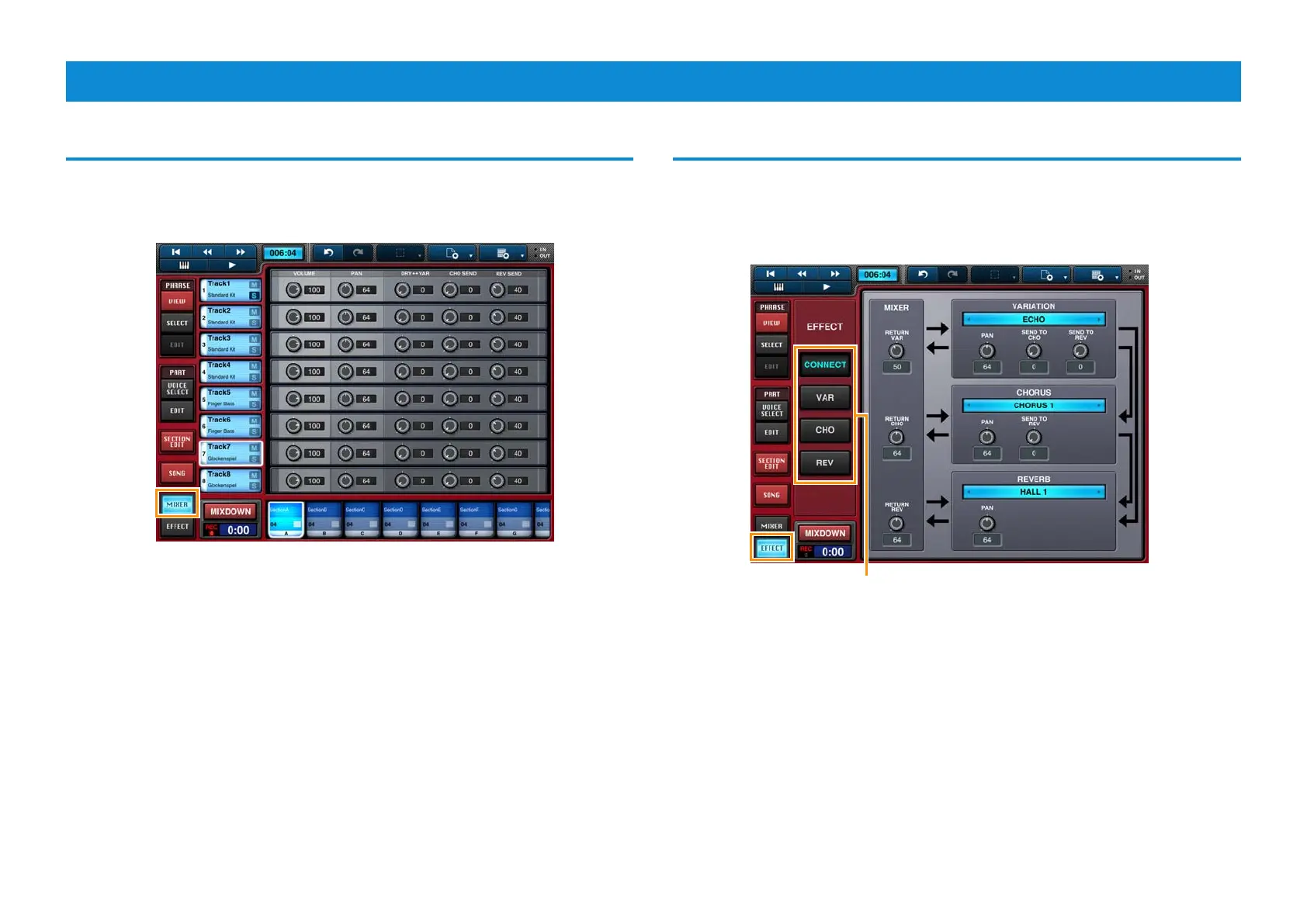 Tap [EFFECT] to open the Effects screen. Here, you can configure a variation
