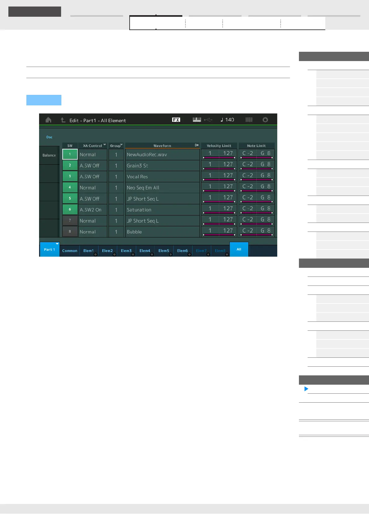 [PERFORMANCE (HOME)] [EDIT] Part selection [All] [Osc]