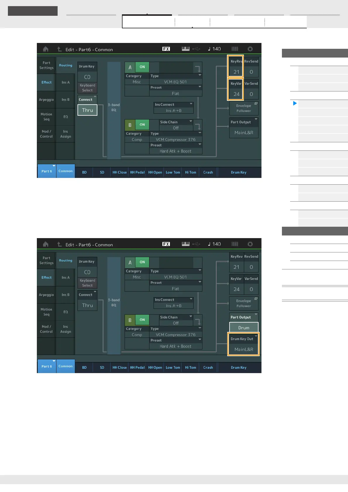 This is active only when the Drum Key Connection Switch is set to “Thru” and the Part Output/Drum Key