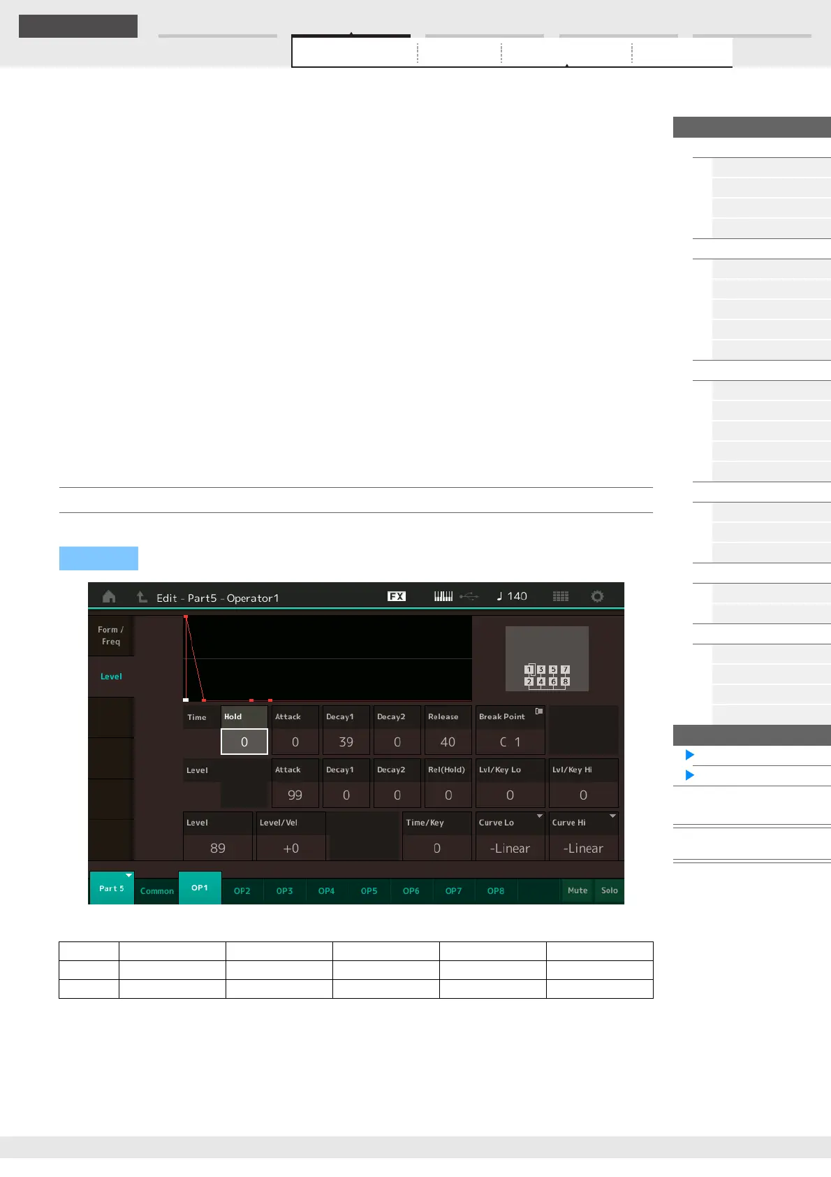 Attack Level Decay1 Level Decay2 Level Release (Hold) Level