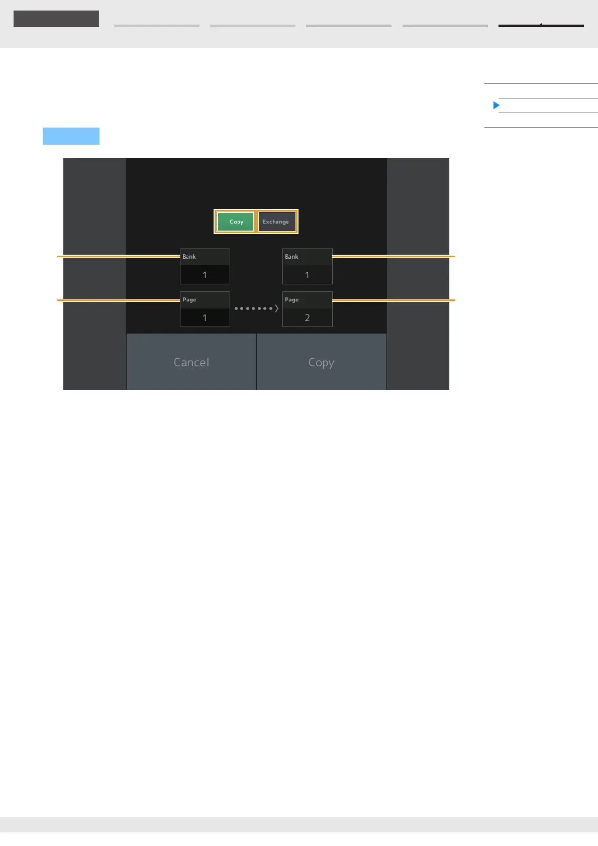 Touching this button activates the Bank/Page Copy function.