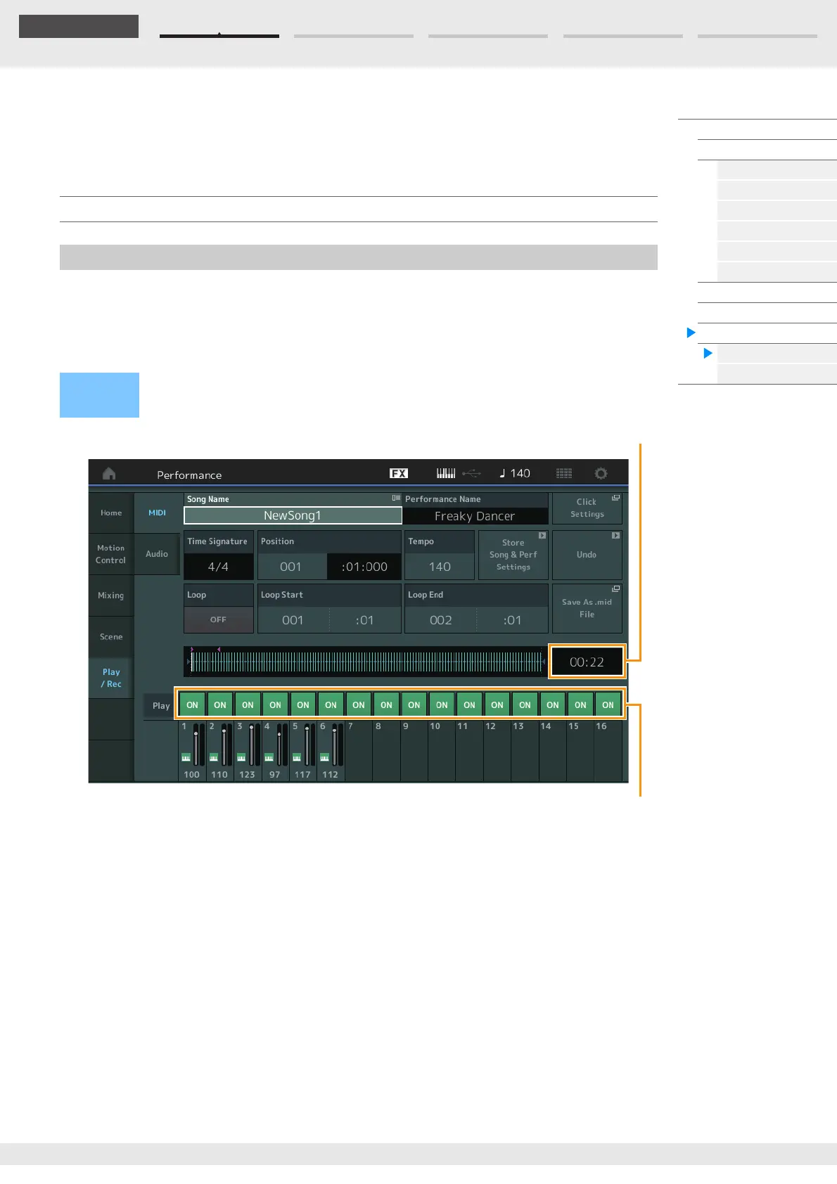 [PERFORMANCE (HOME)] [Play/Rec] [MIDI]
