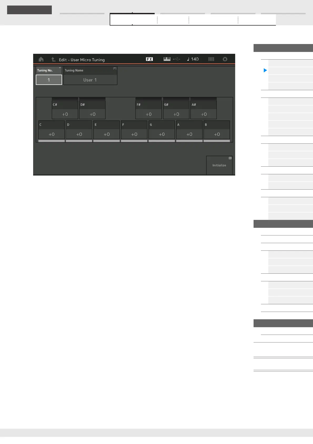 Adjusts the pitch of each note in 1 cent steps determines the Micro Tuning.