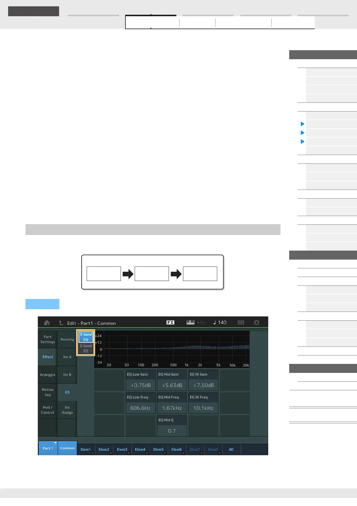 [PERFORMANCE (HOME)] [EDIT] Part selection Element [Common] [Effect] [EQ]