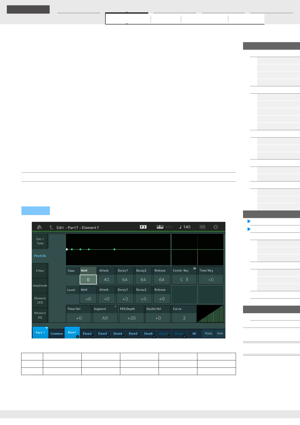[PERFORMANCE (HOME)] [EDIT] Part selection Element selection [Pitch EG]