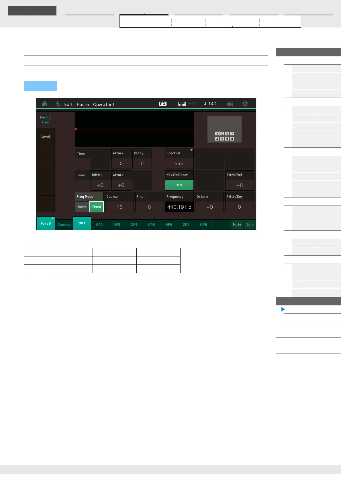 From the Form/Frequency display you can make all the waveform and frequency settings for Operators.
