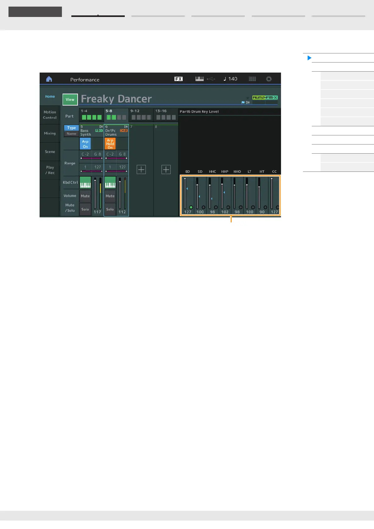 Yamaha MODX7 - Drum Key View; Drum Key Level