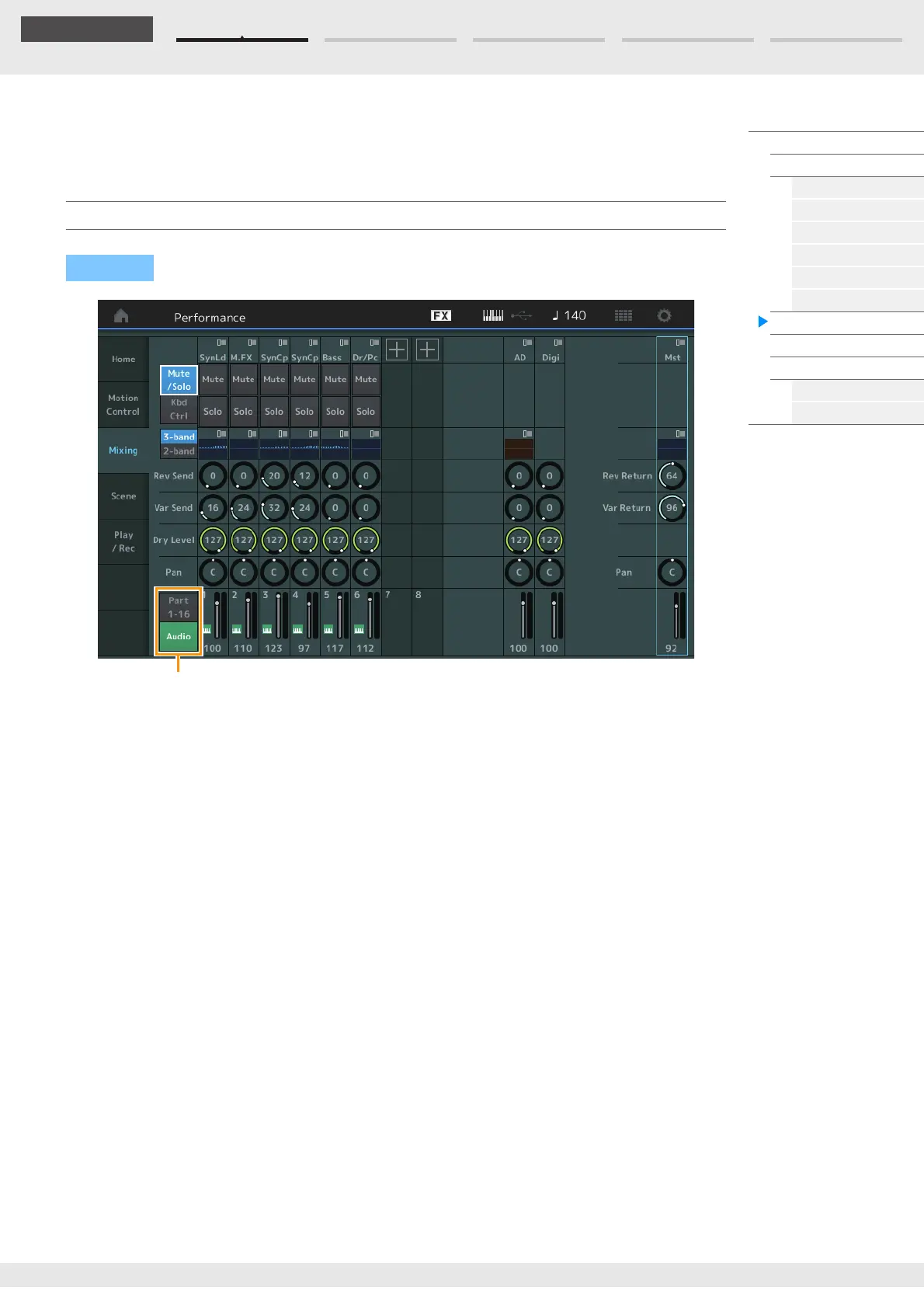 NOTE The settings in the Mixing display are stored as part of Performance data.