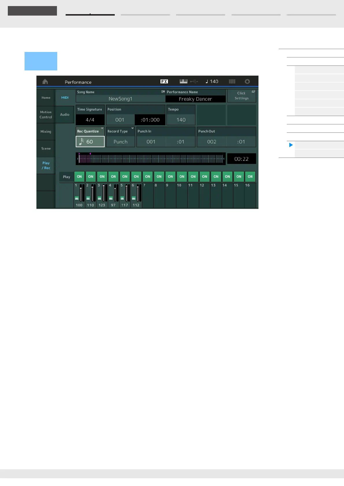 NOTE For details about the Punch In/Out setting, see the Owner’s Manual.