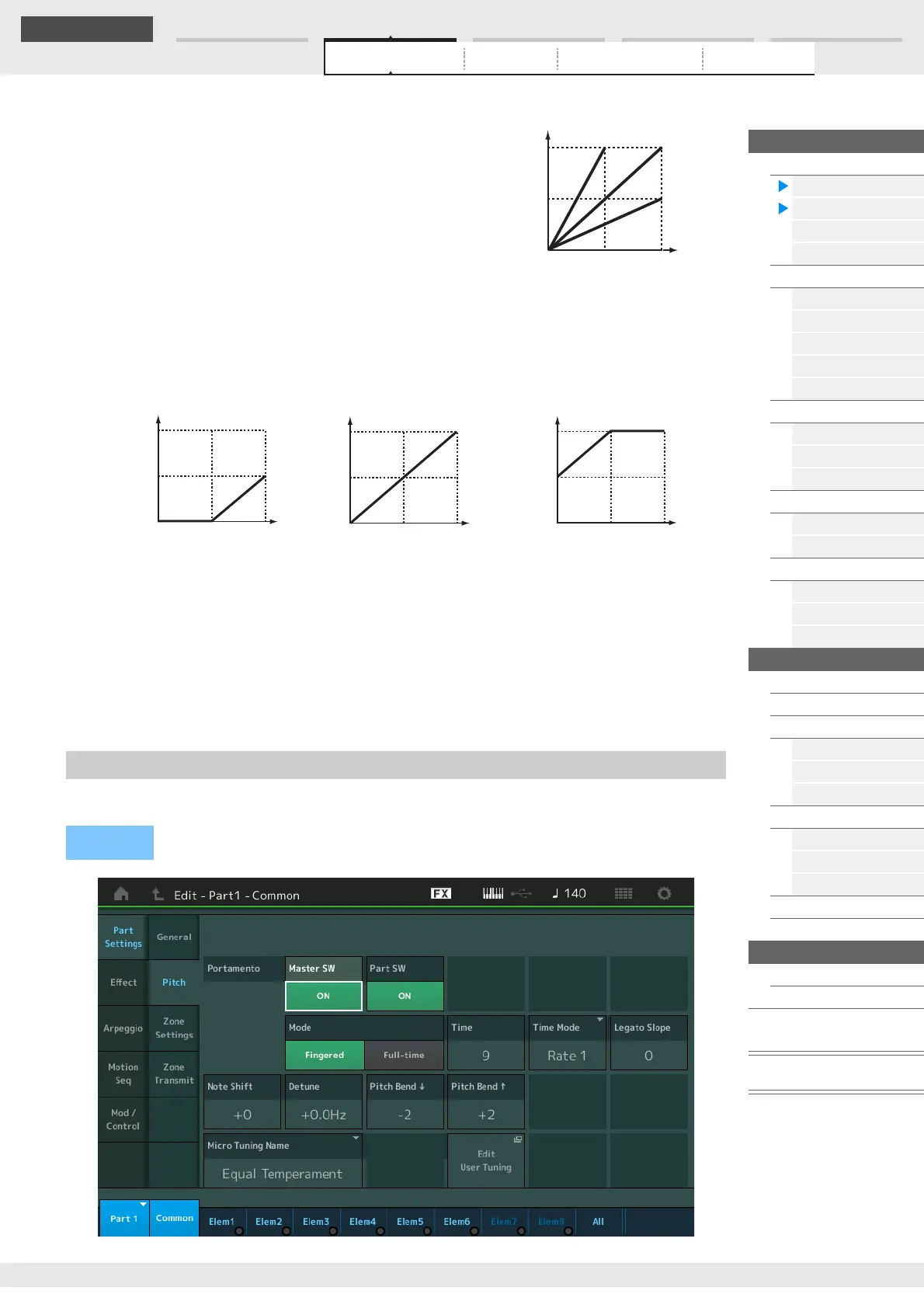 From the Pitch display you can set Pitch-related parameters for the Part.