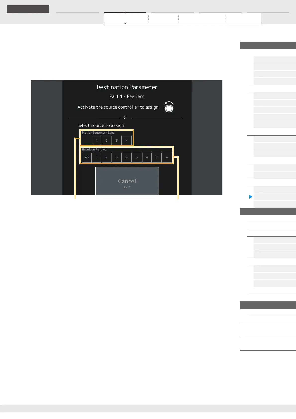 [CONTROL ASSIGN] button on the panel. When the cursor is on the parameter that can be set as a