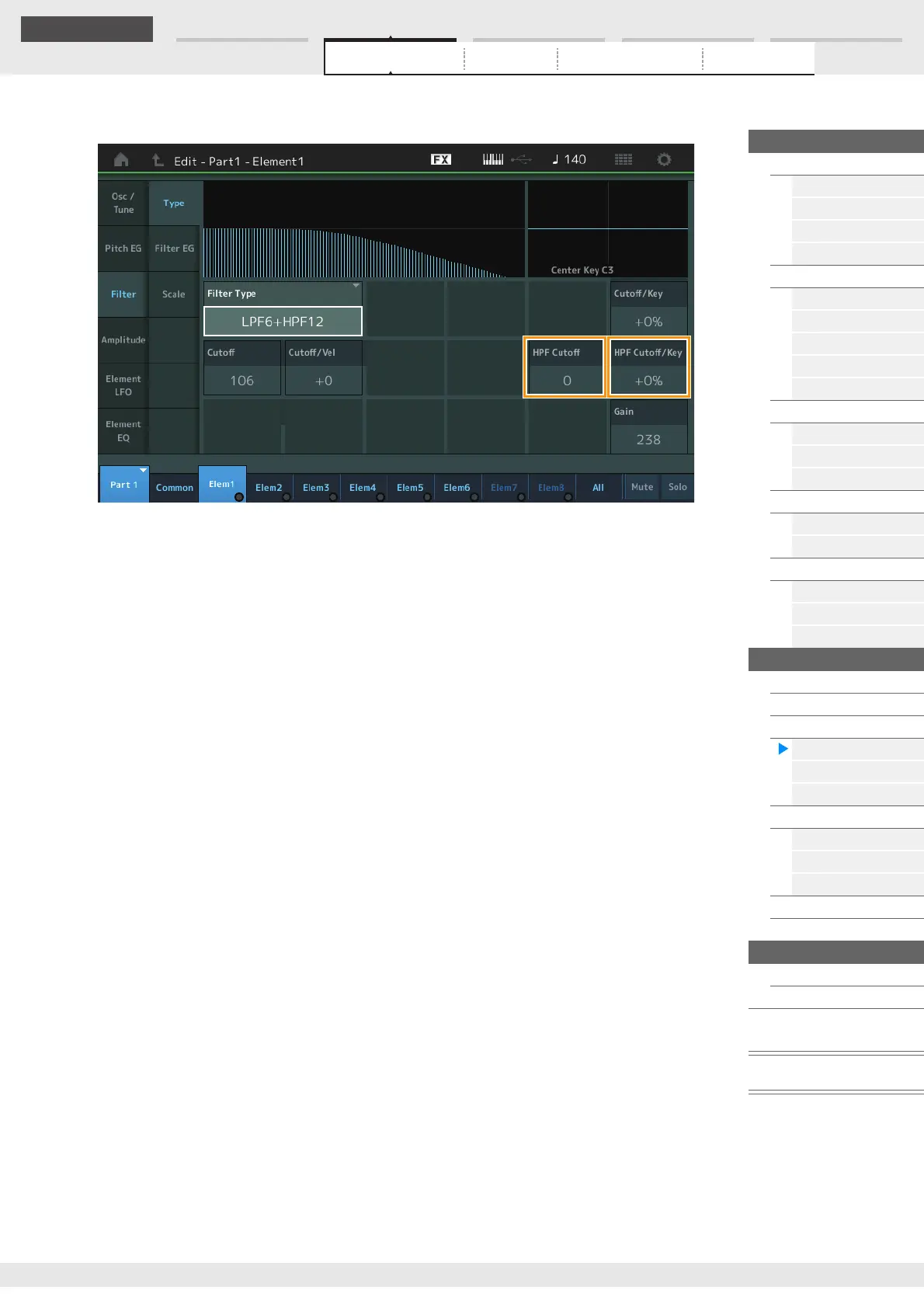 In case of the Filter Type with “HPF Cutoff” and “HPF Cutoff/Key” parameters