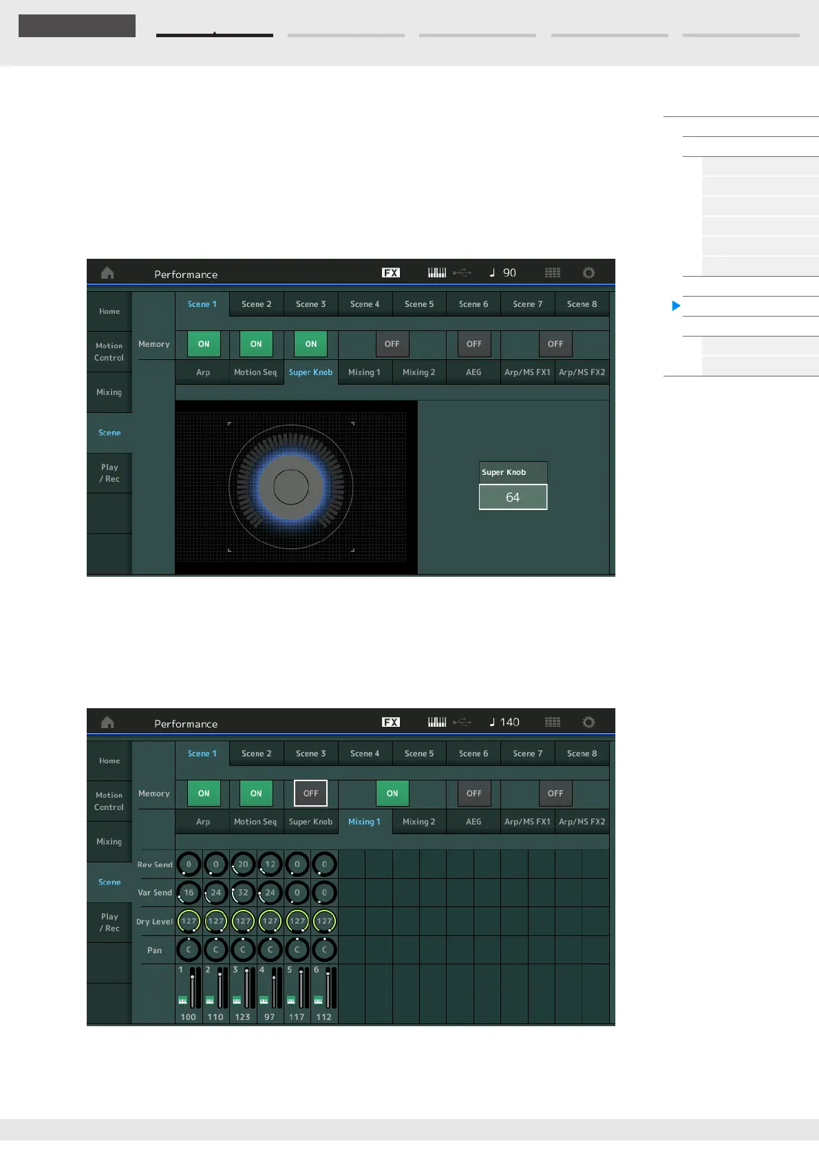 Adjusts the Reverb Send level of each Part in the selected Scene.
