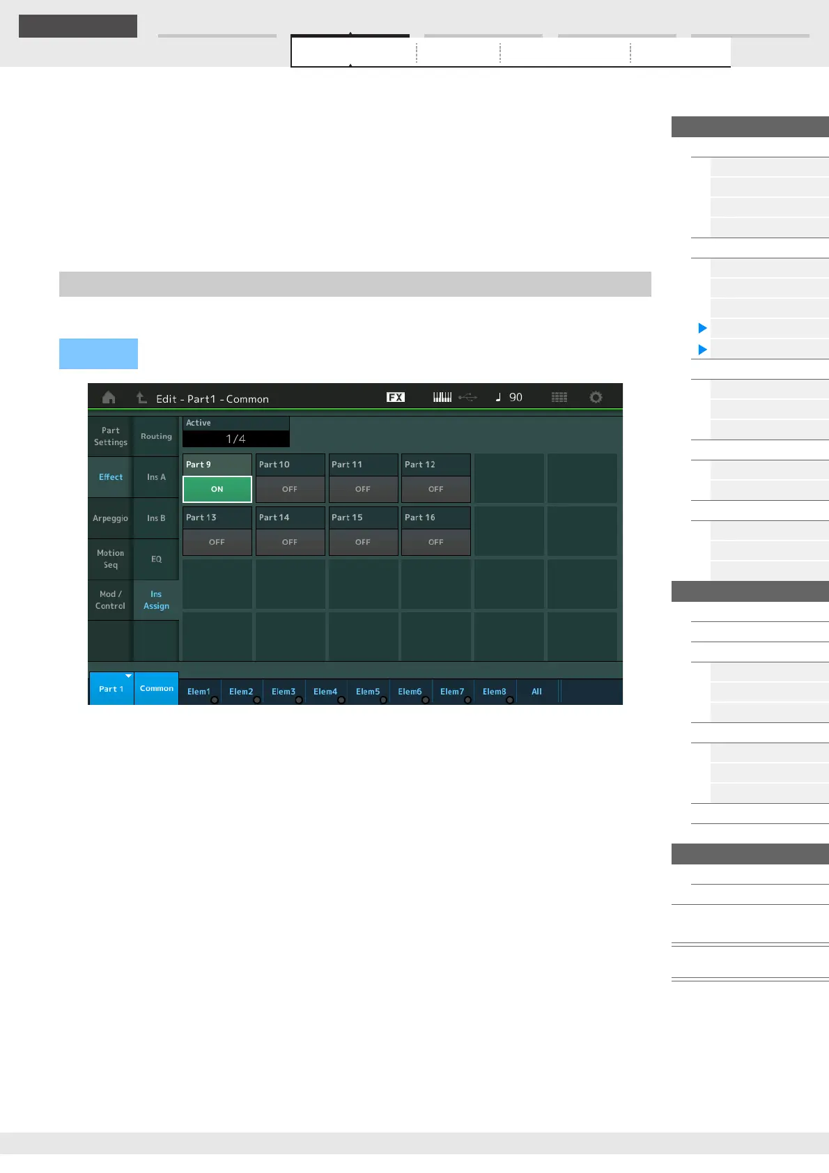 NOTE The Insertion Effect for Parts 1–8 is always ON.
