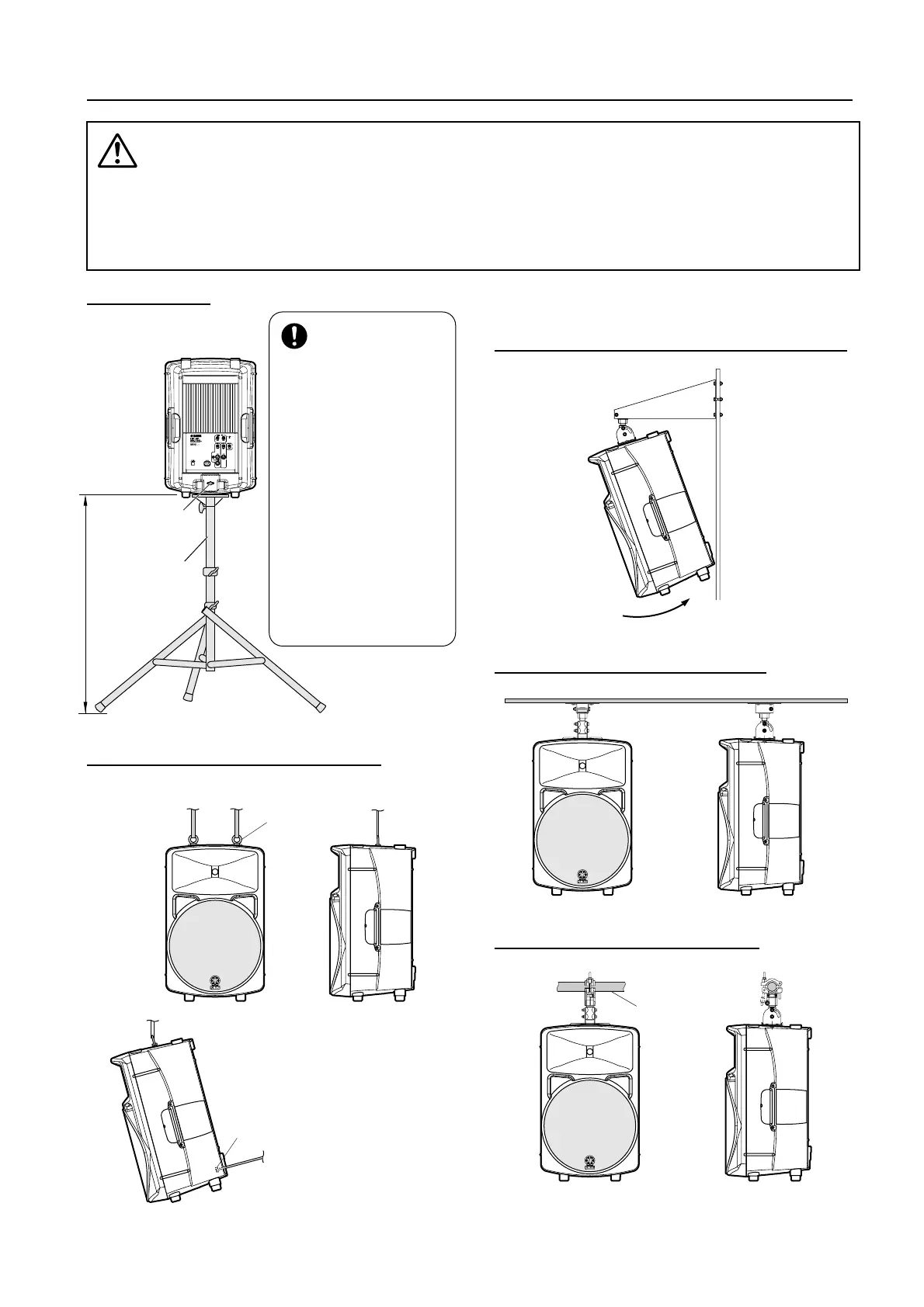 • Do not install two or more speakers on a single speaker stand or bracket. The speaker(s) may