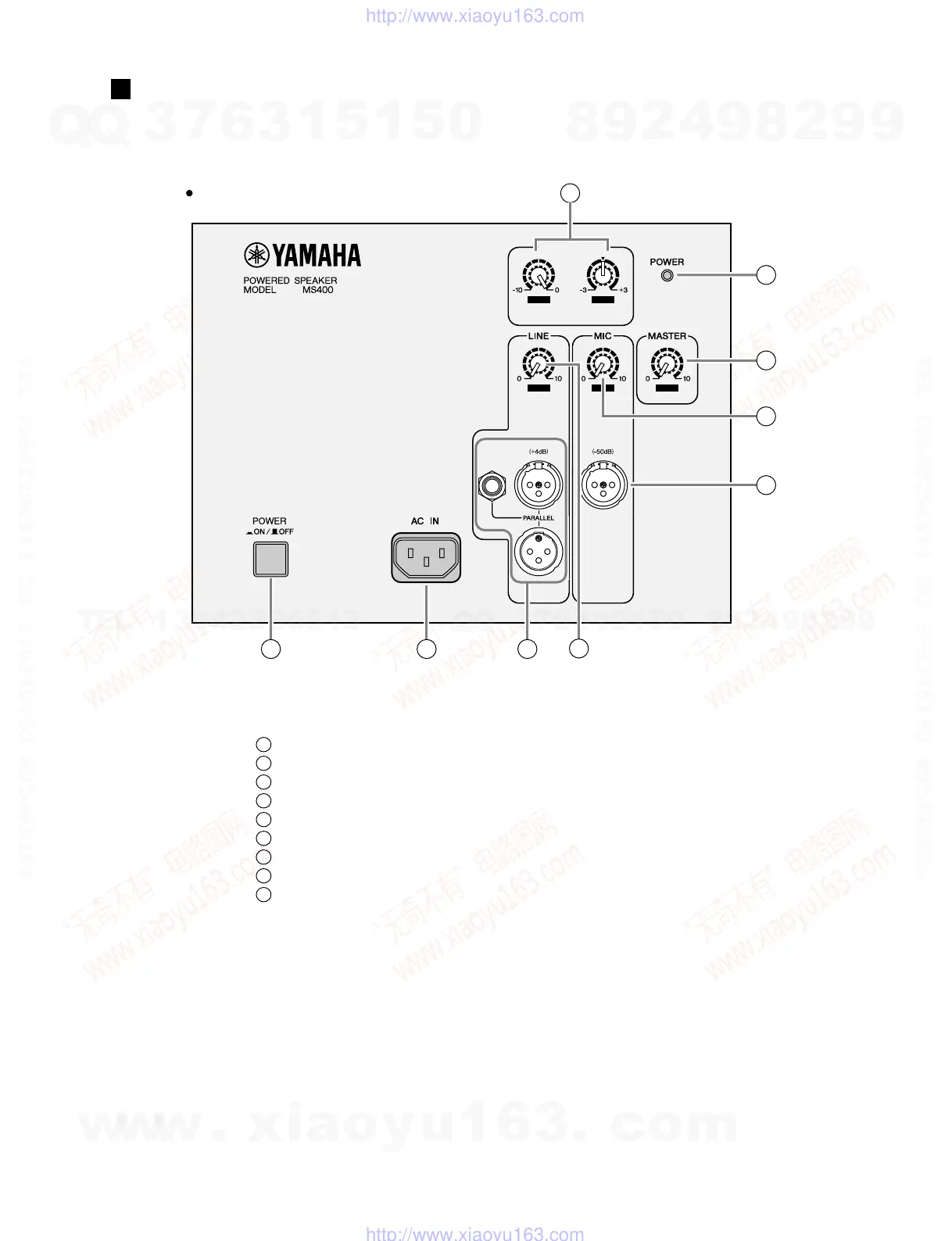 Yamaha MS400 - PANEL LAYOUT; Rear Panel Layout