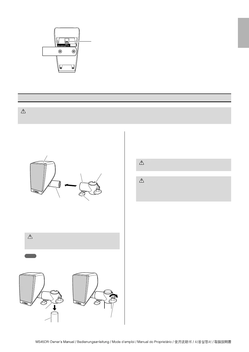 The MS45DR satellite speakers can be attached to straight vertical pipes of 1.5-inch (38.1-mm) diameter. These speakers cannot be