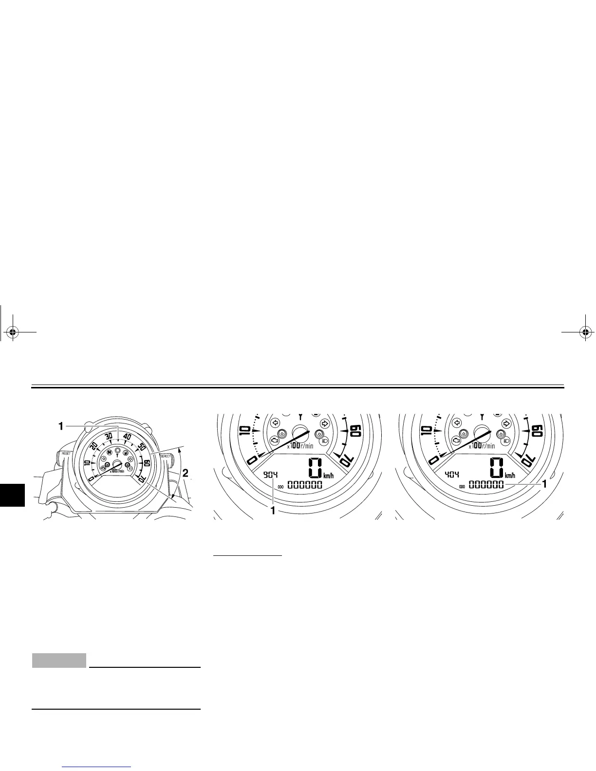 1. Clock 1. Odometer/tripmeter/fuel reserve tripmeter