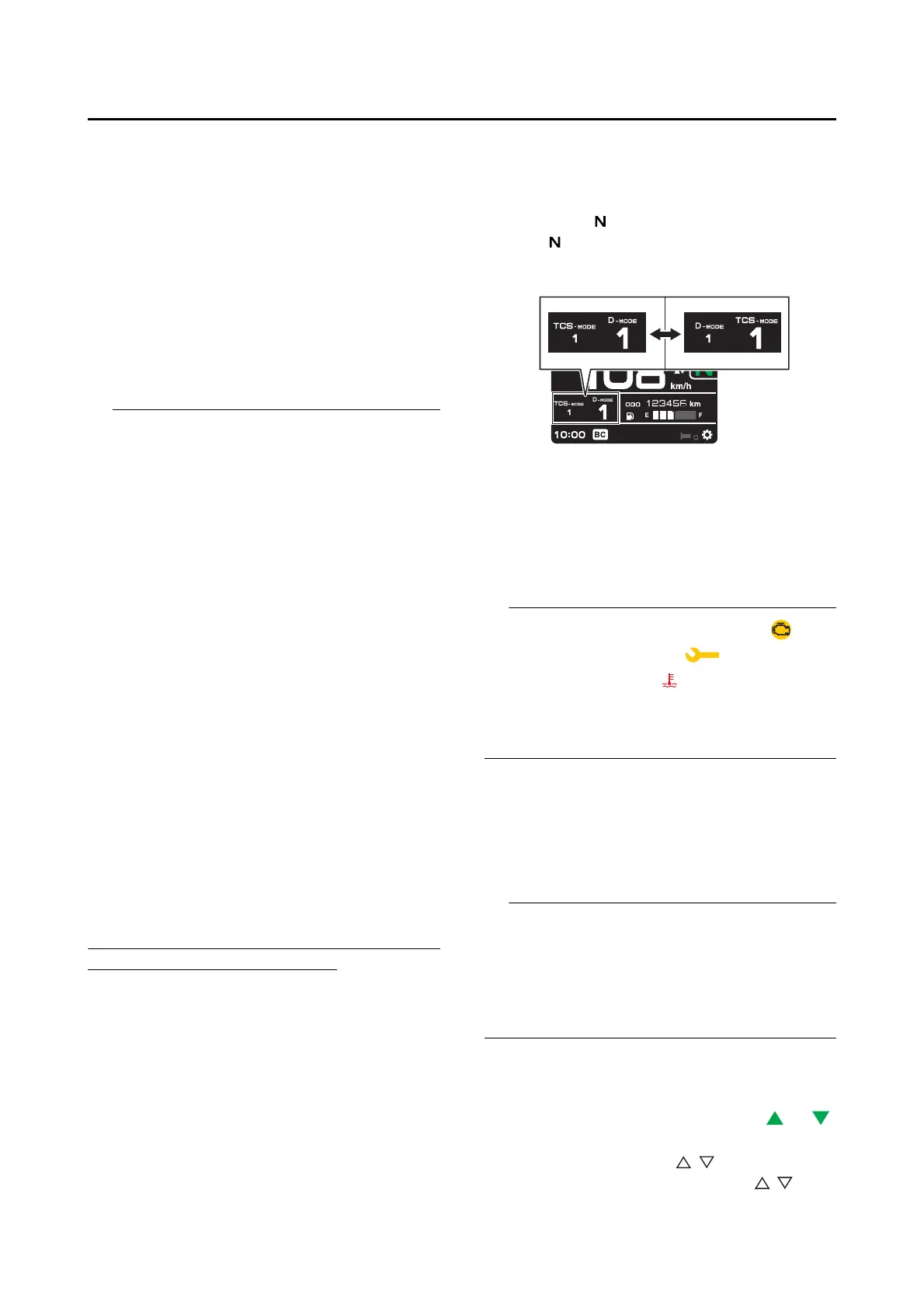 • The “TCS-MODE OFF” and “TCSMODE M”