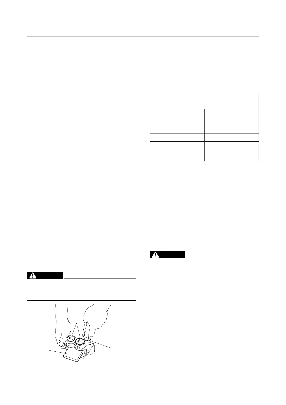 • Never try to pry out the brake caliper pis-