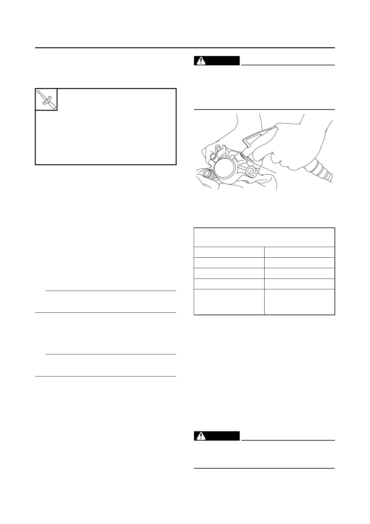 • Never try to pry out the brake caliper pis-