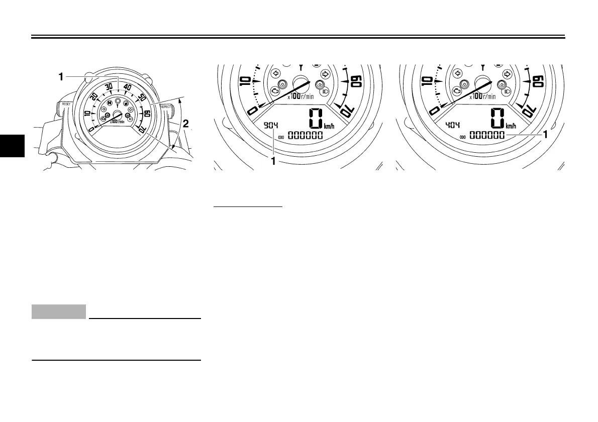 1. Clock 1. Odometer/tripmeter/fuel reserve tripmeter
