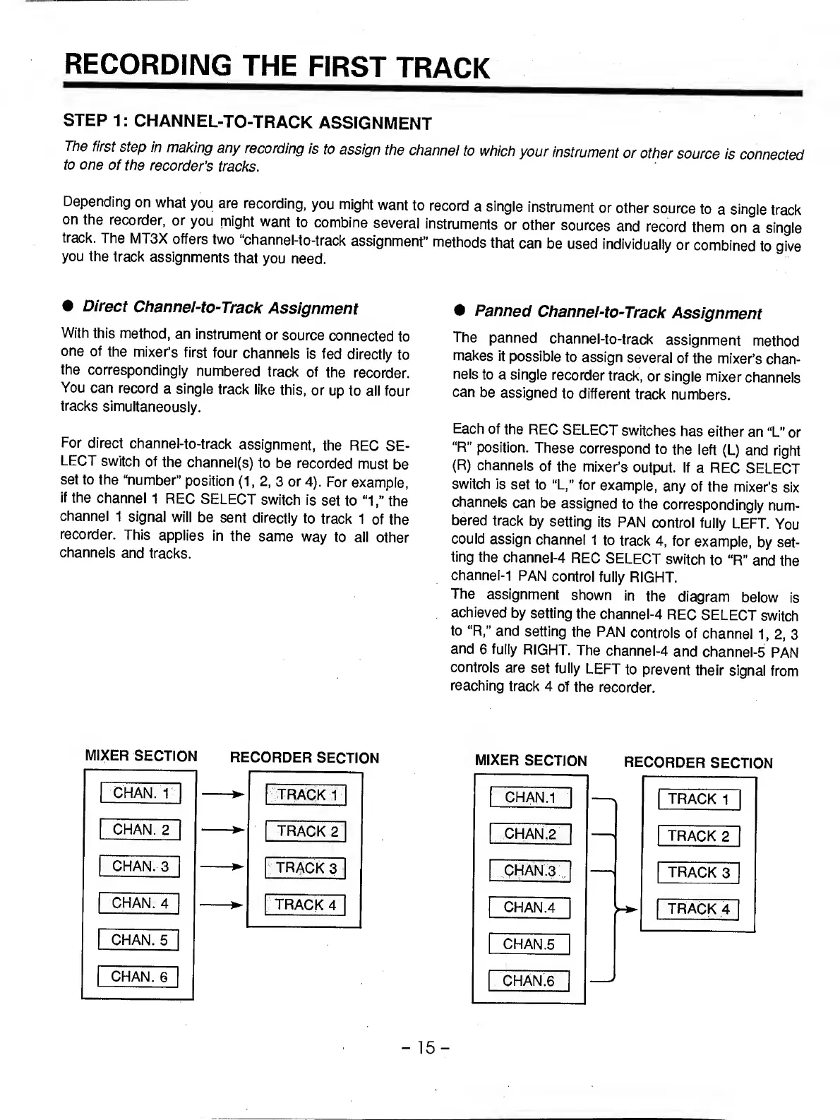 Yamaha MT3X - RECORDING THE FIRST TRACK; Step 1: Channel-to-Track Assignment