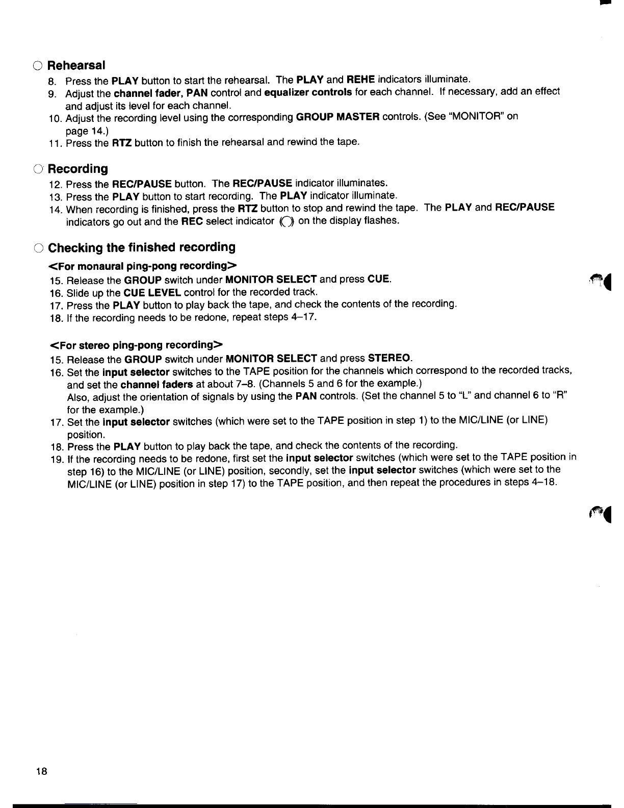 Yamaha MT8X - Ping-Pong Recording Execution; Ping-Pong Rehearsal; Executing Ping-Pong Recording; Verifying Ping-Pong Recording