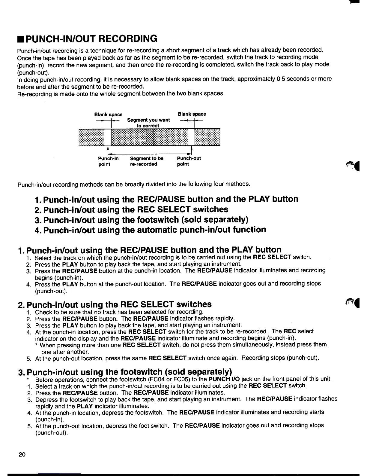 Yamaha MT8X - Punch-In;Out Recording Methods; Punch-In;Out Recording Methods Overview; Punch-In;Out with REC;PAUSE and PLAY; Punch-In;Out with REC SELECT Switches