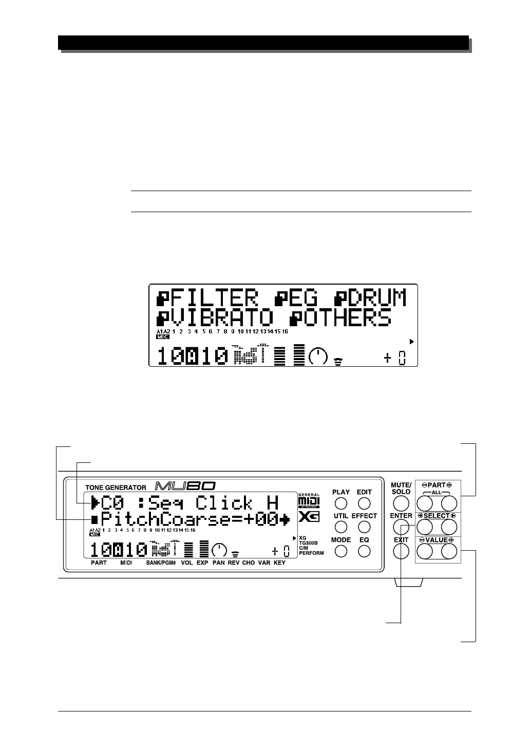 Level, Pan, effect send, filter controls and EG (Envelope Generator), among