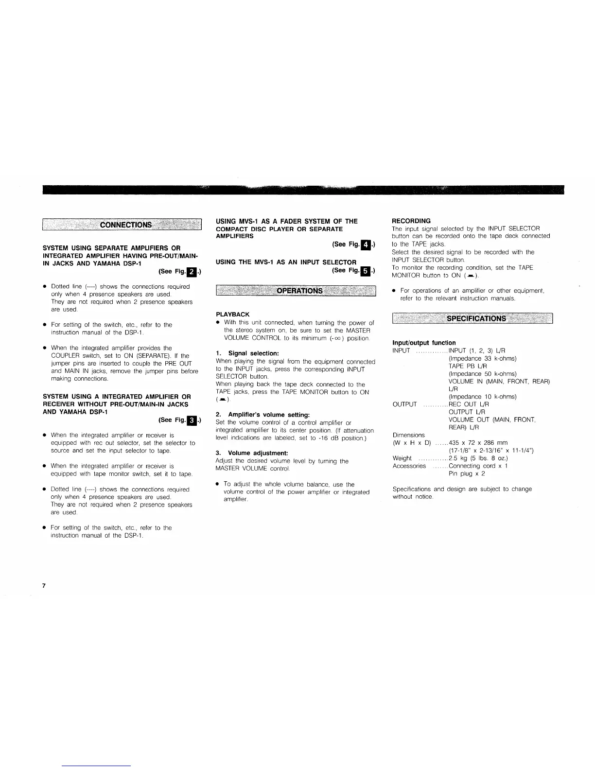 Yamaha MVS-1 - System Connections and Setup; Amplifier and Speaker Configurations; Using MVS-1 in Various System Roles; Operational Procedures