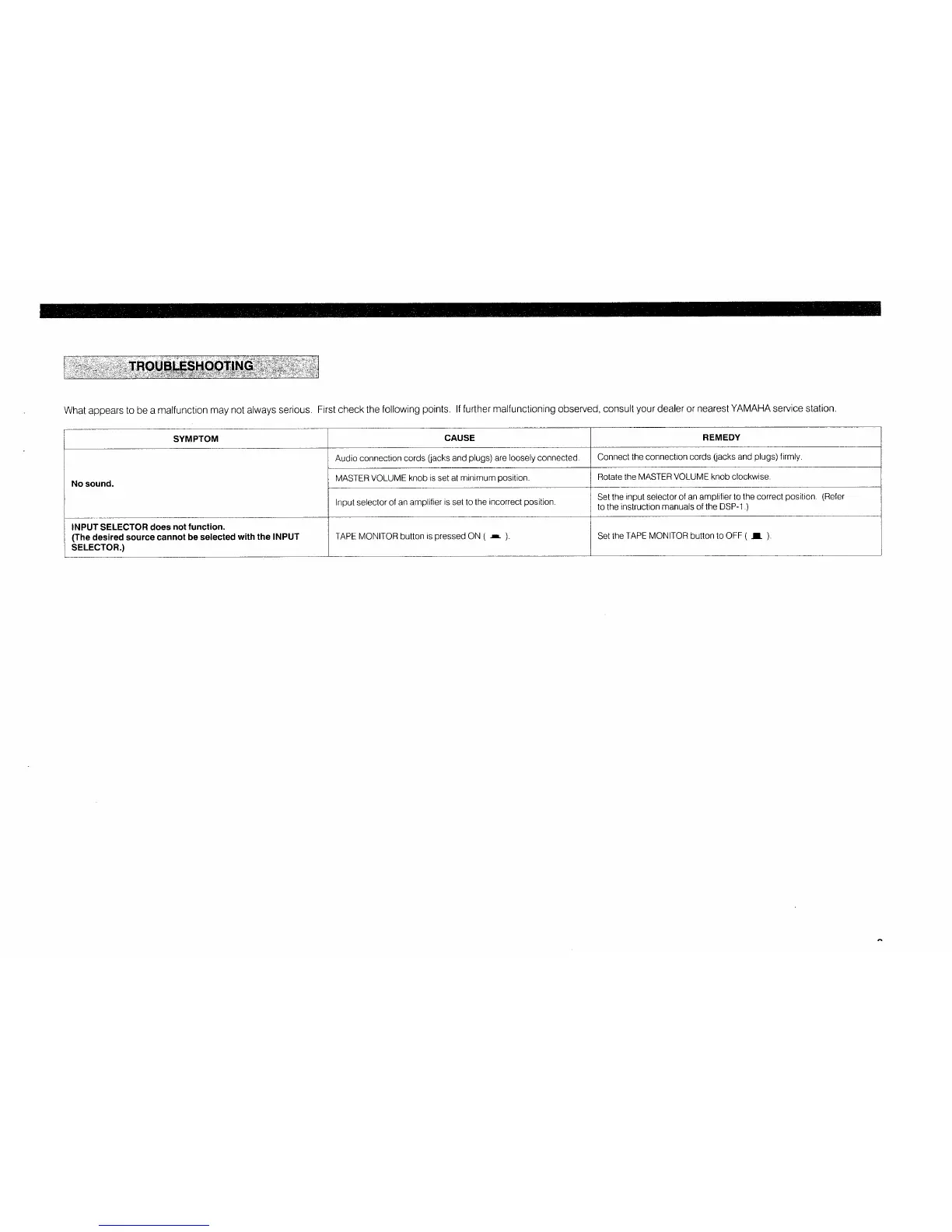 Yamaha MVS-1 - Troubleshooting Guide