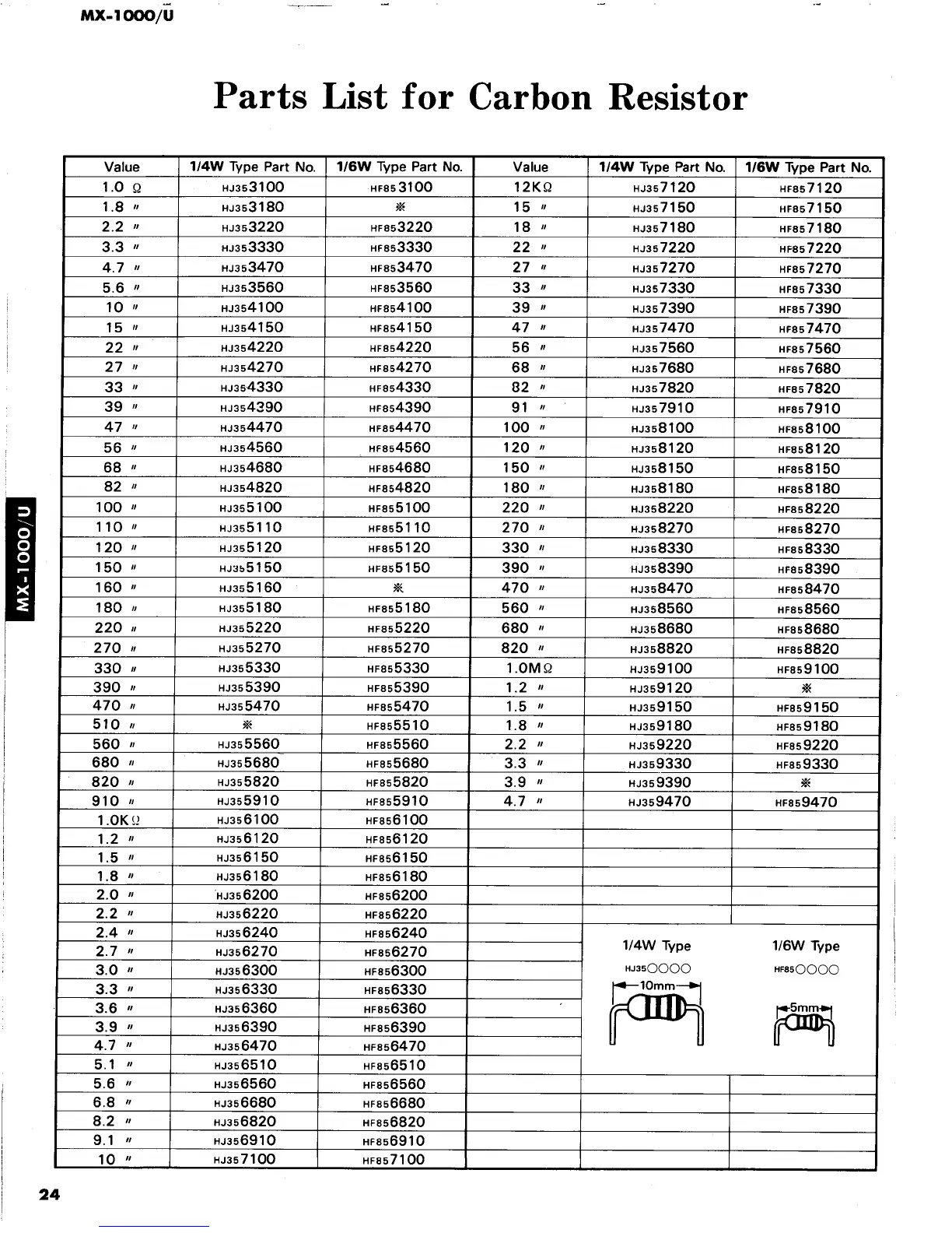 Yamaha MX-1000/U - Parts List for Carbon Resistor