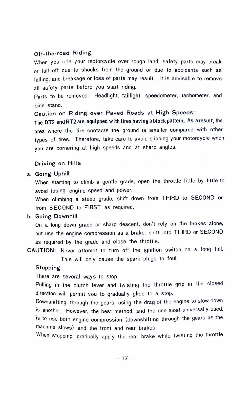 stopping, gradually apply the rear brake while twisting the throttle