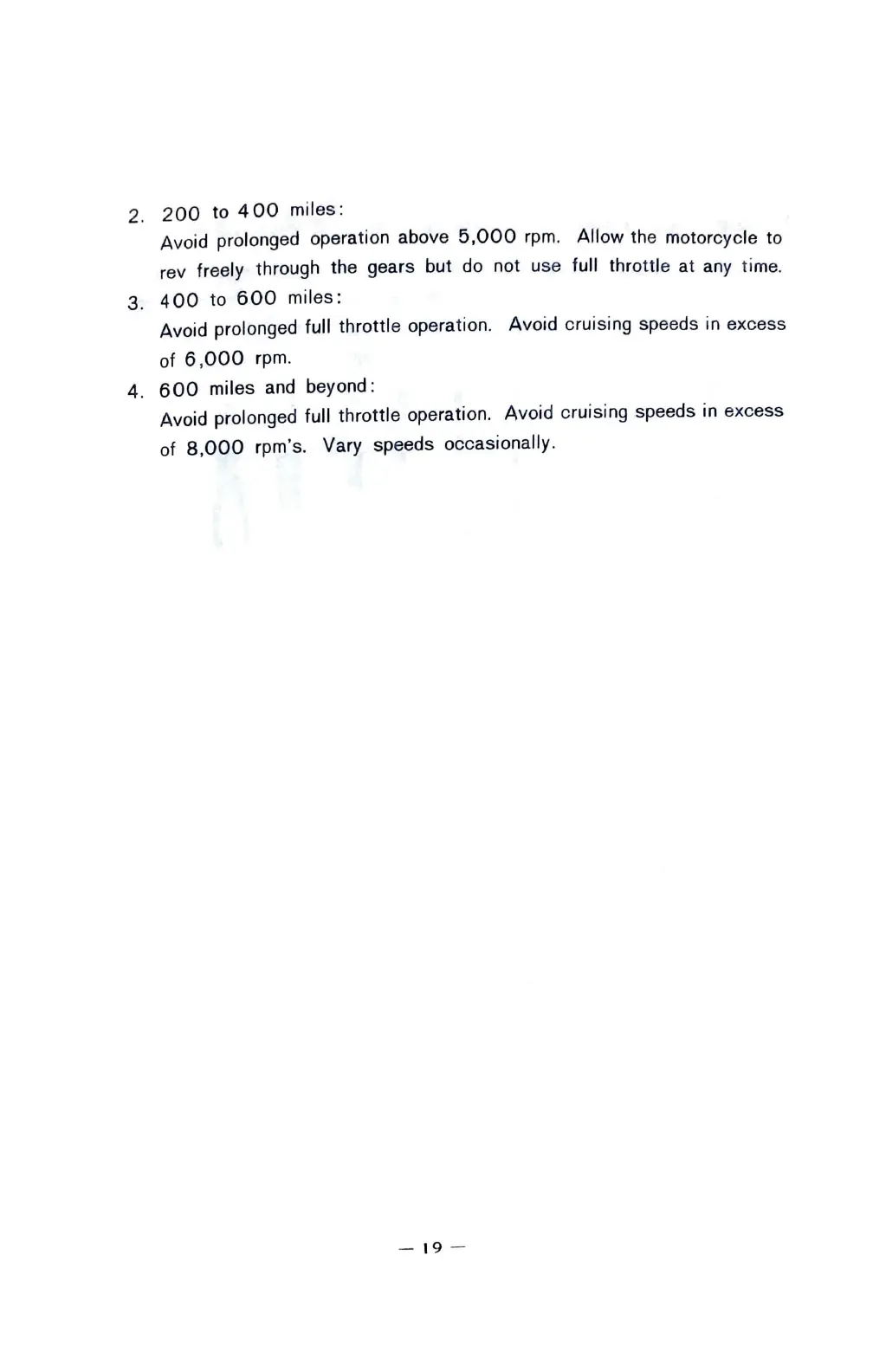Avoid prolonged full throttle operation. Avoid cruising speeds in excess