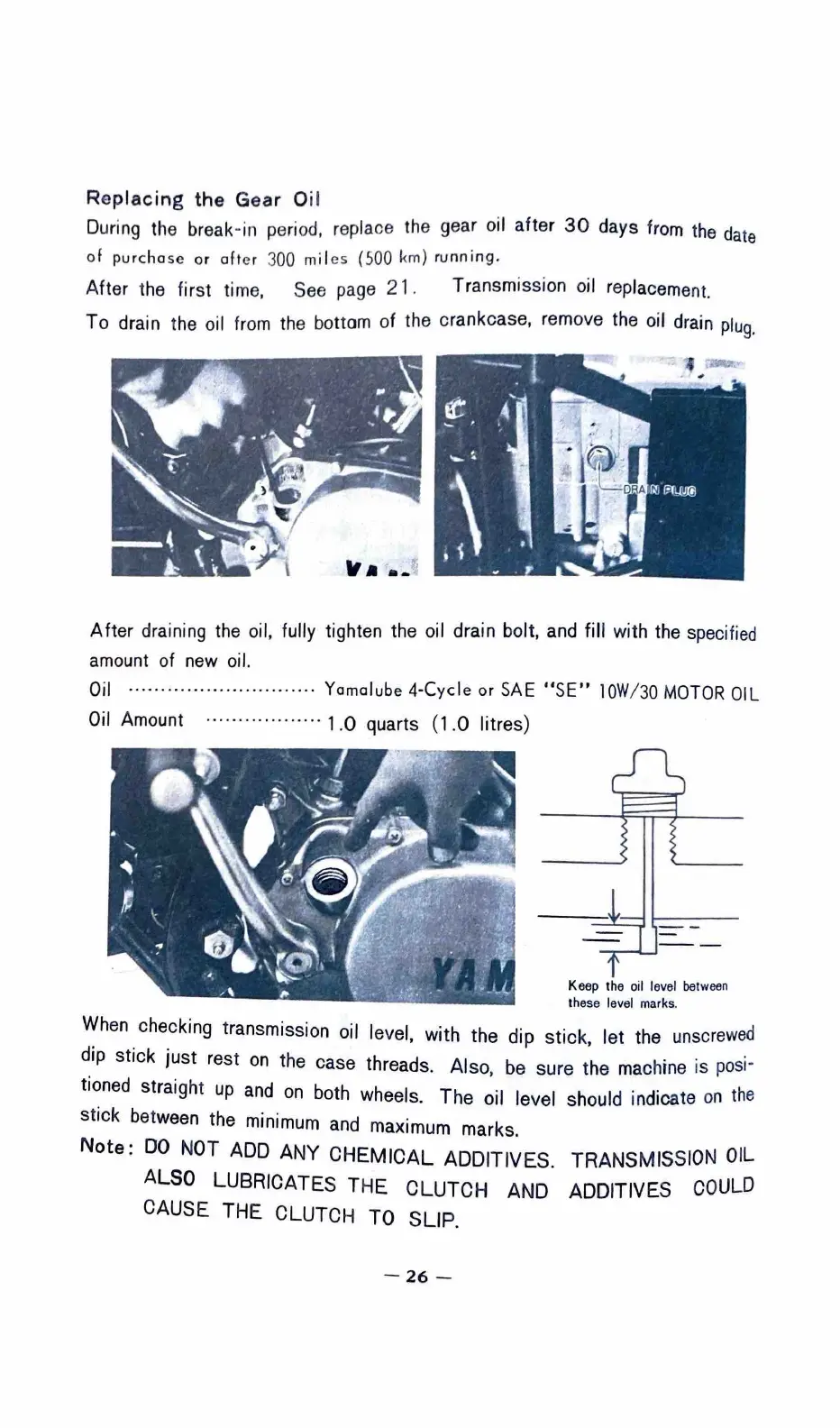 During the break-in period, replace the gear oil after