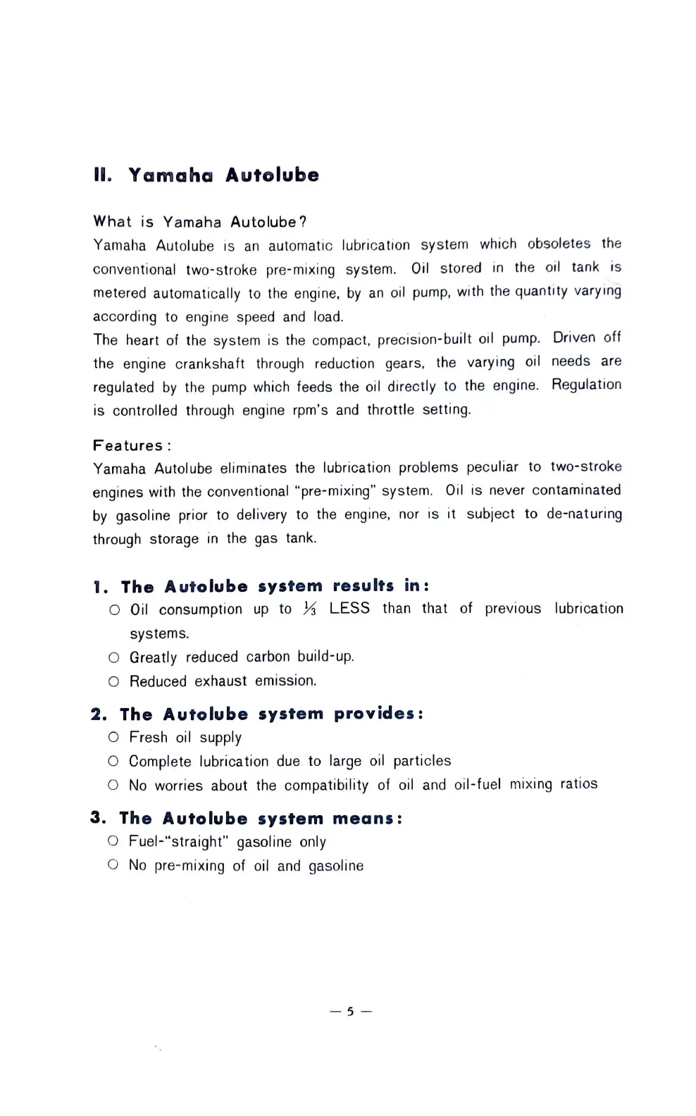 Yamaha Autolube eliminates the lubrication problems peculiar to two-stroke