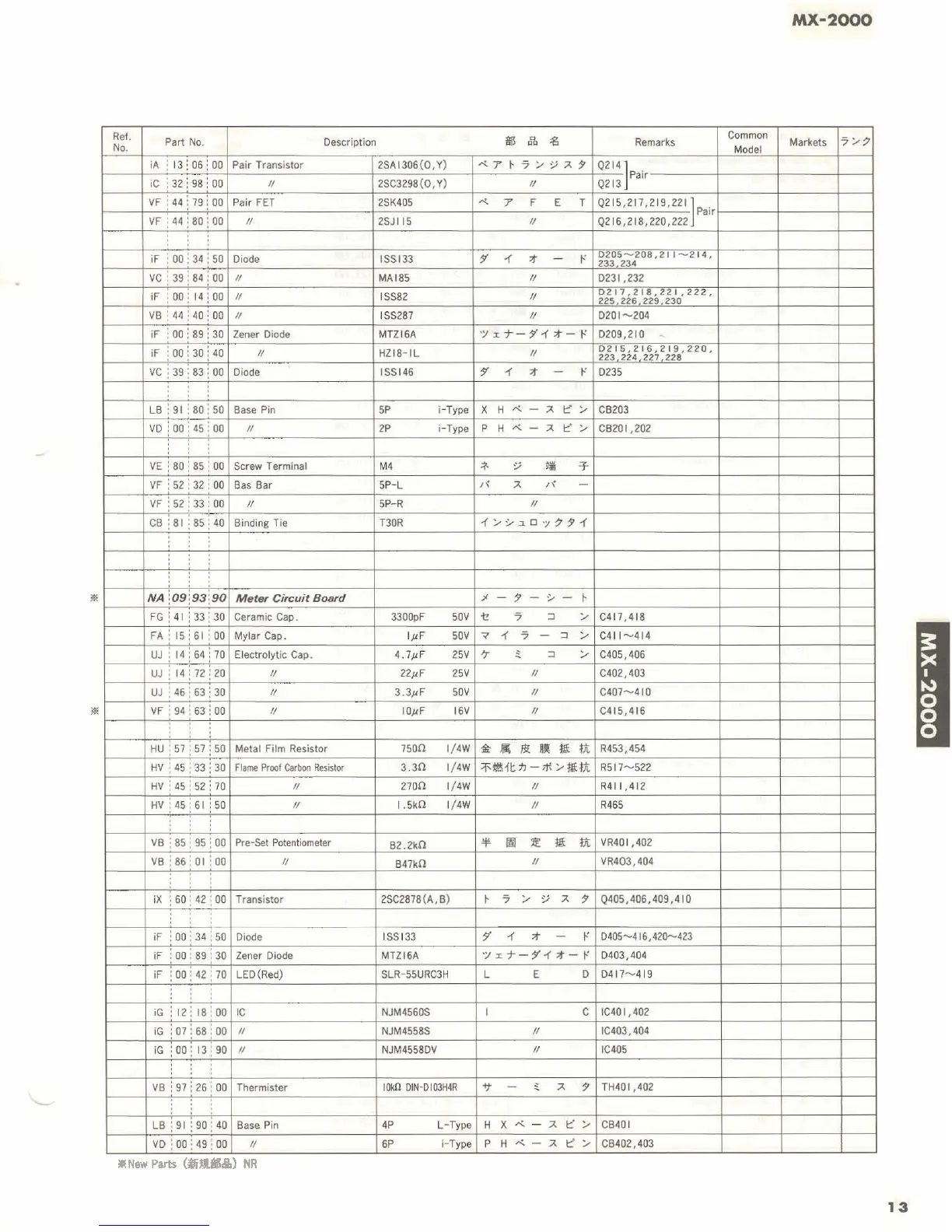 Yamaha MX-2000 - PARTS LIST (Electrical - Section 2); Electrical Parts: Transistors and ICs